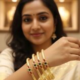 Enhance your ethnic look with these beautifully crafted gold-plated bangles, designed to bring a perfect blend of tradition and modern style. Featuring a rich textured finish and elegant floral motifs studded with red and green stones, these bangles add a graceful charm to any outfit.