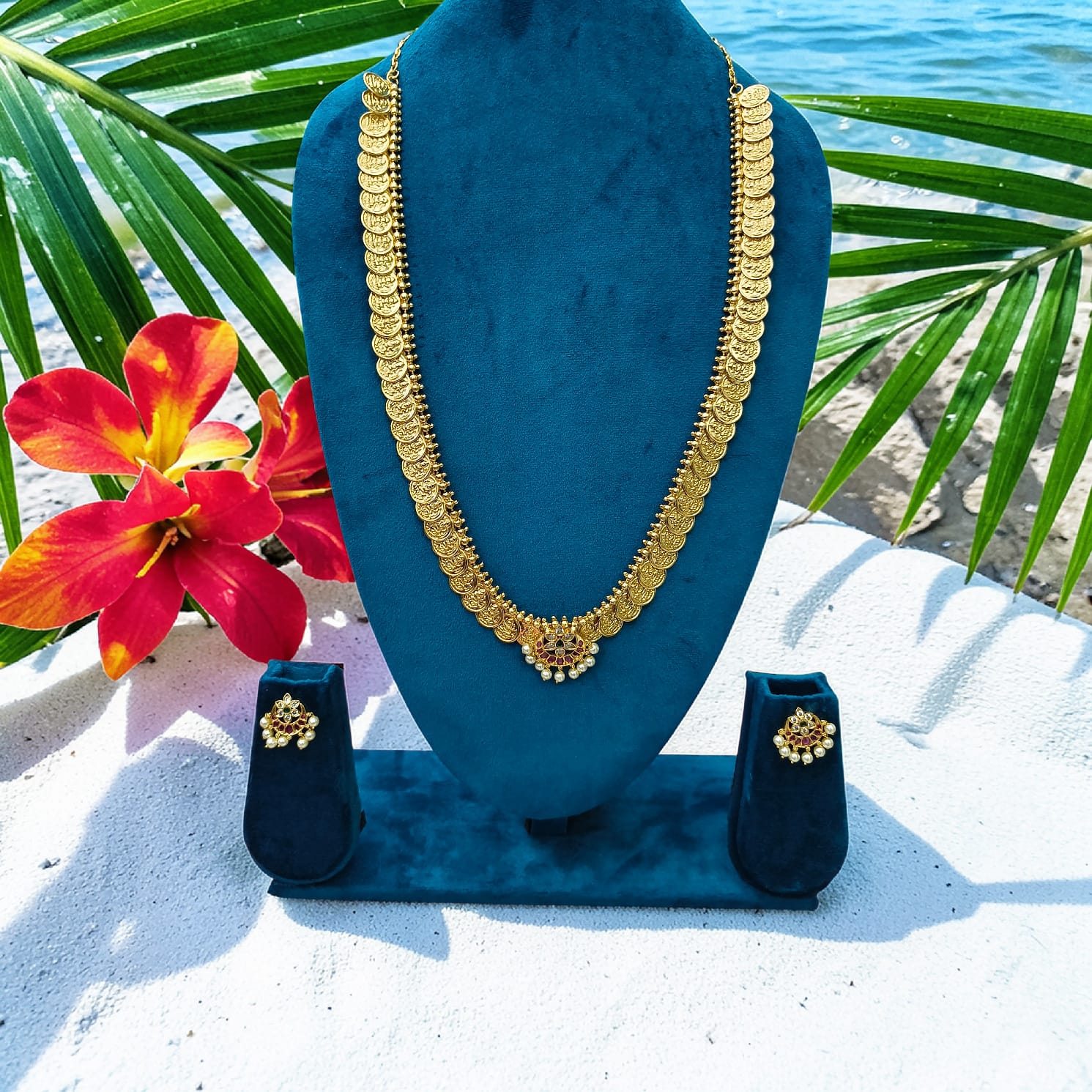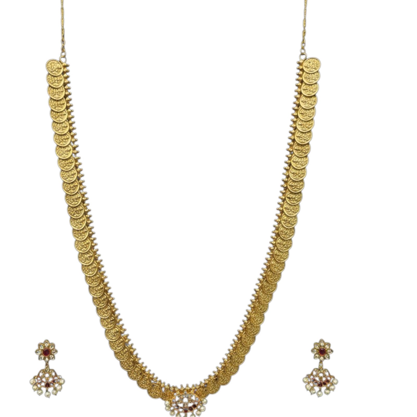Step into every celebration with grace and divine radiance with this majestic Mahalakshmi Kasula Peru Long Necklace Set. ✨