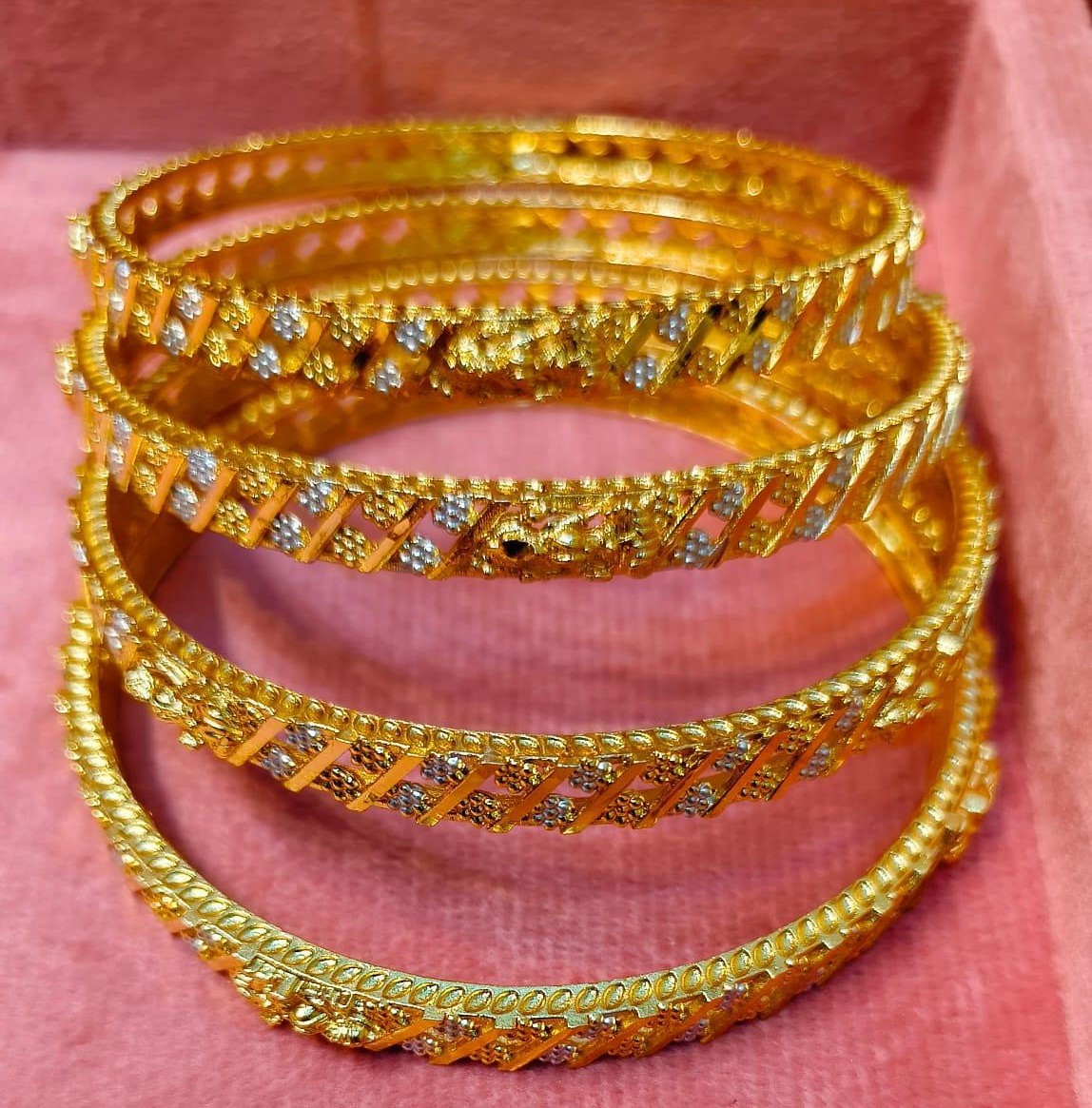 Celebrate tradition and elegance with these beautifully crafted Mahalaxmi Bangles, inspired by classic temple jewellery aesthetics. Designed with intricate detailing and a radiant gold-tone finish, these bangles feature delicate stone embellishments and patterned craftsmanship that add a rich, festive charm. Perfect for weddings, traditional occasions, and festive wear, they enhance both ethnic and contemporary outfits with grace.