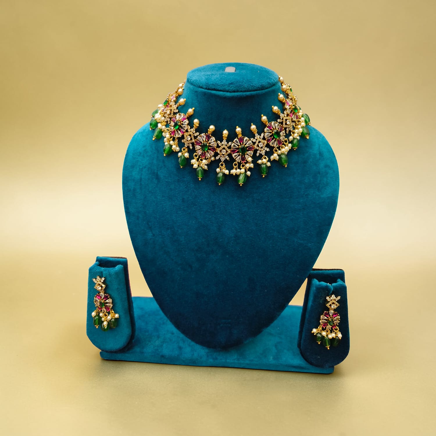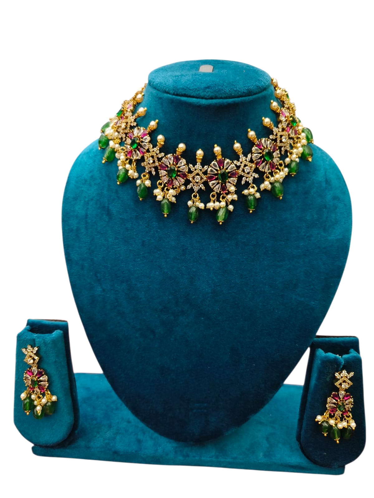 Perfect for weddings, receptions, engagements, and festive celebrations, this Ruby Kundan AD Necklace Set is a must-have addition to your premium jewelry collection — a true symbol of tradition, beauty, and timeless elegance.