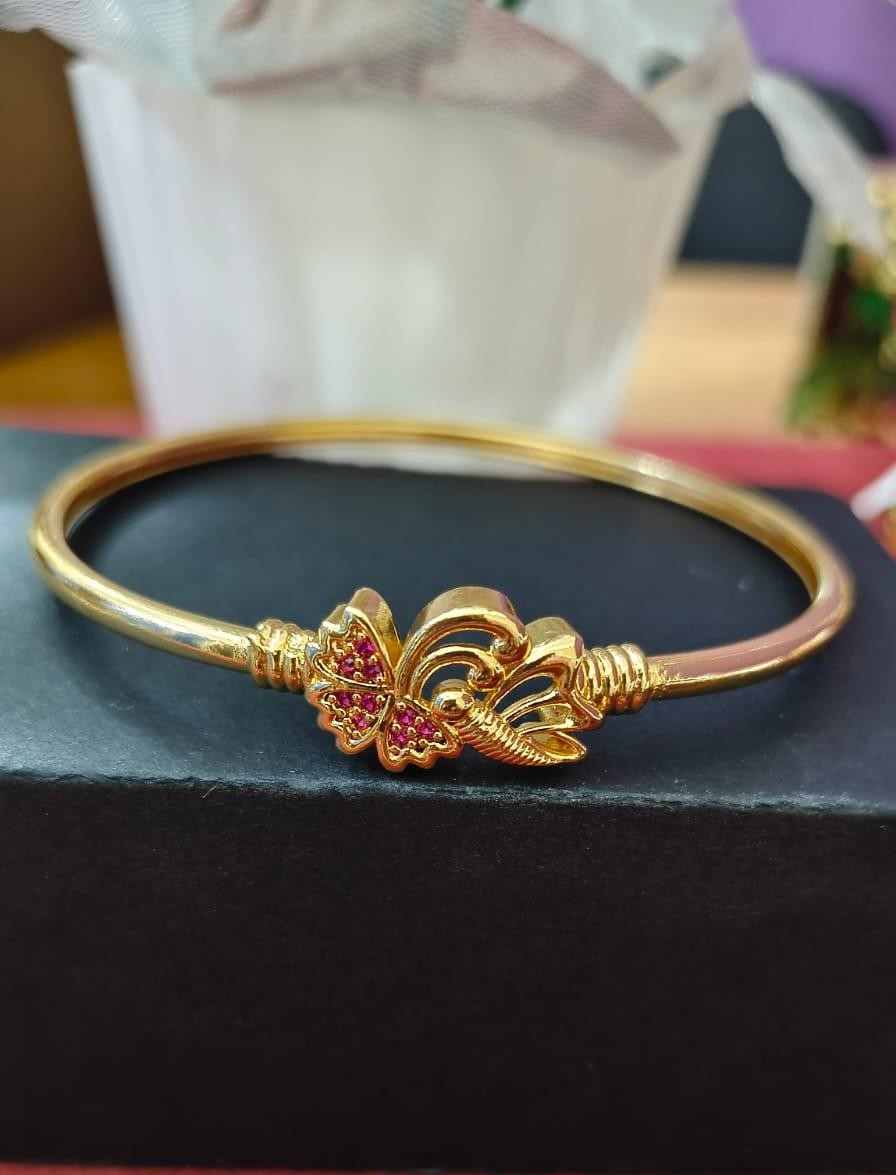 Designed for women who love lightweight yet stylish jewellery, this bracelet offers the luxurious appearance of gold while remaining comfortable for daily wear. The smooth, polished band sits elegantly on the wrist, while the intricate butterfly motif adds a touch of sophistication and uniqueness to the piece. Whether paired with ethnic wear, festive attire, or casual outfits, it effortlessly elevates your overall look.